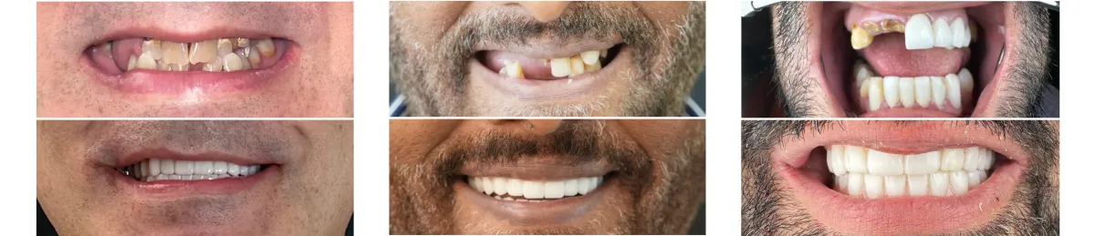 Most patients receive extractions, implants, and a same-day provisional bridge in one visit. Healing typically takes 3–6 months, after which a fully customized final zirconia or PMMA hybrid prosthesis is delivered.